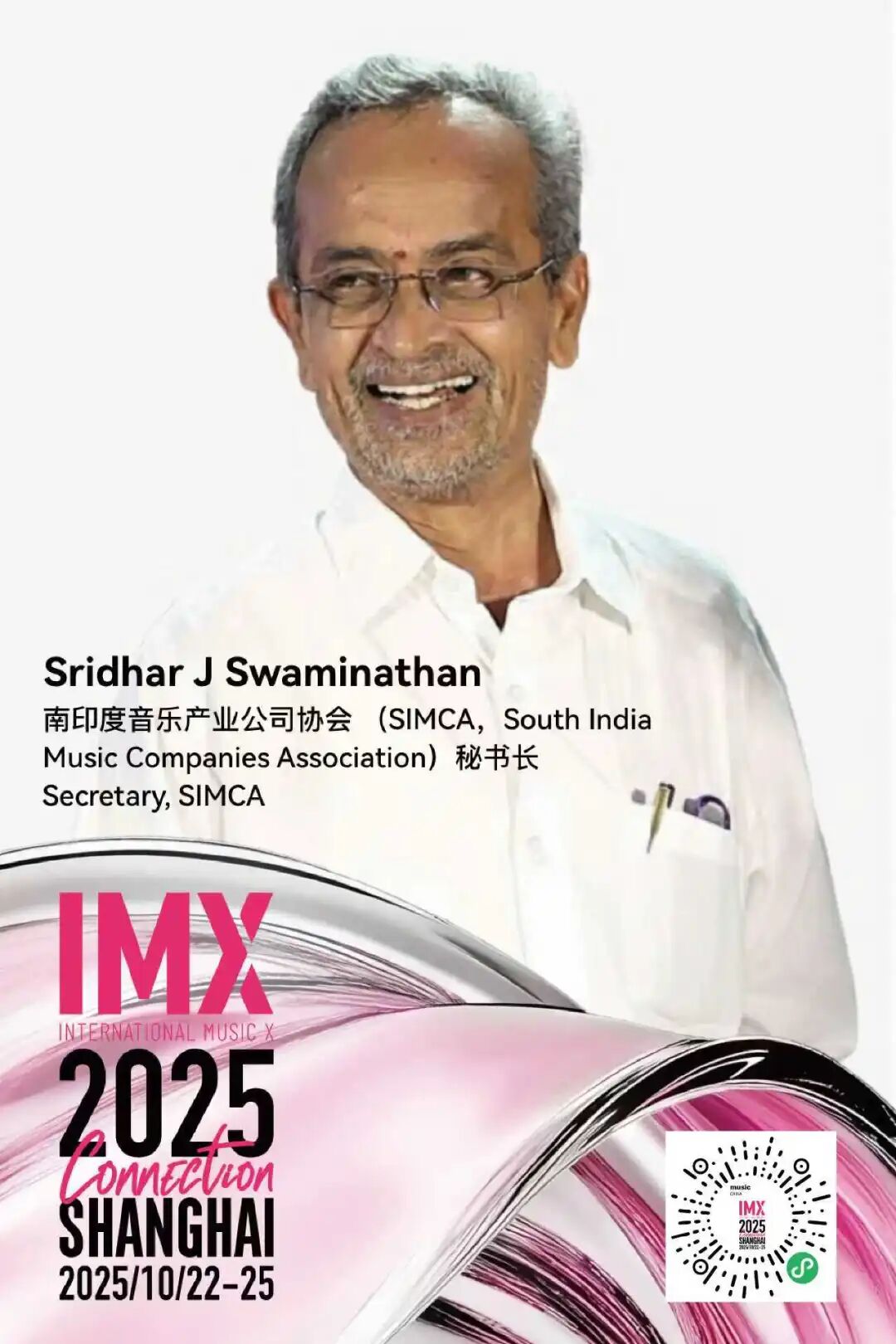 拥有三十余年行业经验的 Sridhar,是南印度传统音乐产业的重要代表,同时也是数字化转型的积极践行者。他主导了南印度数字音乐管理(SIDMM)的建设,并创办多家媒体公司,在数字发行、版权管理和商业变现方面积累了丰富经验。他的工作为区域音乐市场向数字化与可持续发展转型提供了实践样本与可行路径。