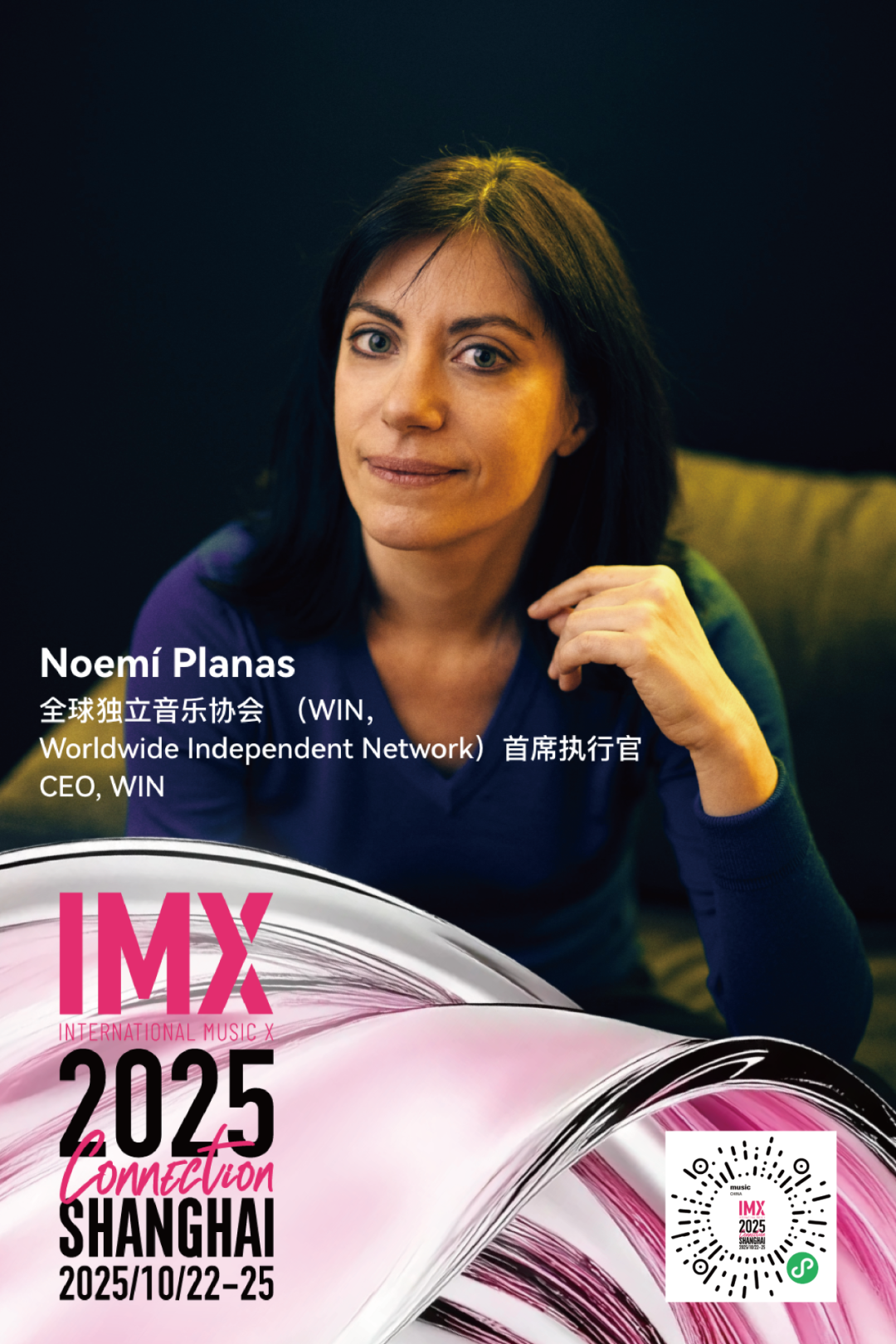 作为全球独立音乐协会 WIN 的重要连接者,Noemí 连续两年入选 Billboard 独立音乐权力榜。她的经历横跨音乐出版公司创办、欧洲及西班牙独立音乐联盟管理,既有创业实践,也有行业治理经验,使她成为能够从不同维度推动独立音乐生态建设的关键人物。