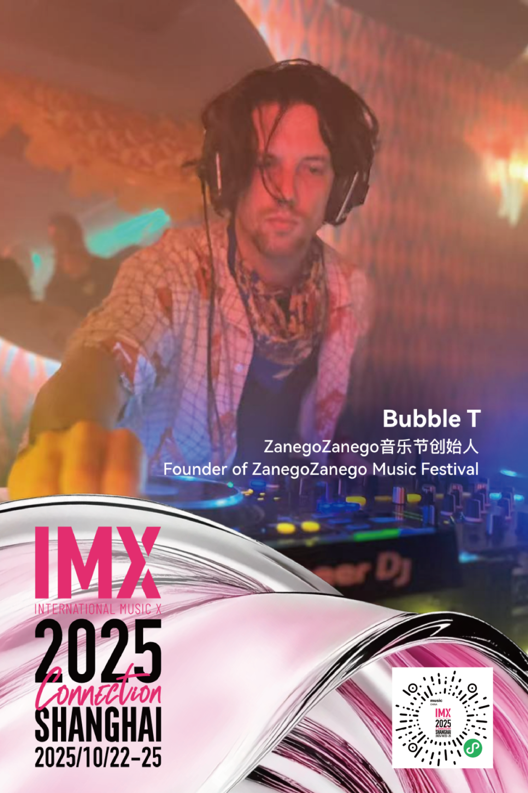 从意大利的朋克贝斯手到上海的俱乐部 DJ,过去十年Bubble T的足迹遍布全球。这种游牧经历不仅塑造了他独特的音乐美学:在深邃的 Techno 中融入世界民谣元素,也推动了 ZanegoZanego 音乐节的创立,成为跨文化合作与实验的重要平台。