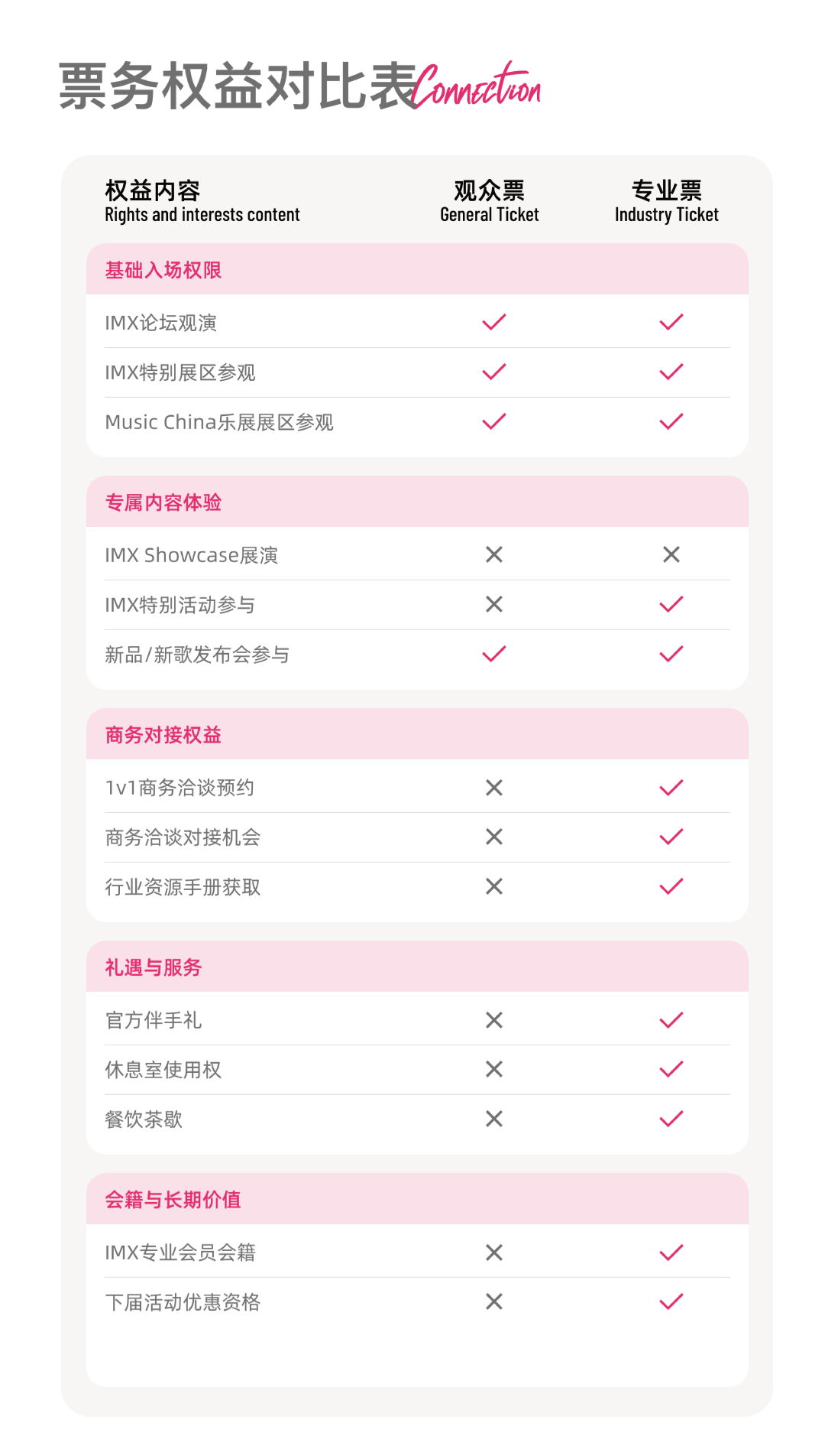 购买专业票可自动加入 IMX 专业会员体系,享下一届活动优先优惠,让每一次参与都转化为可延续的连接与成长。