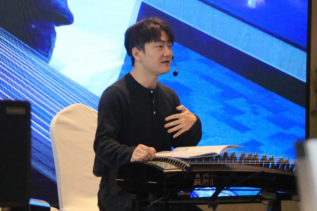 课程中段还迎来惊喜环节,刘乐老师的爱徒及师弟,上海音乐学院青年古筝演奏家、古筝表演硕士研究生于飞洋登台,与刘乐老师共同演示古筝与古筝伴奏版《风月》,双筝和鸣,将乐曲的诗意与深情演绎得更为立体,让学员们直观感受合奏的默契与魅力。这位集演奏、创作、跨界于一身的全能型艺术家,以“声音勾勒古今流转、人间冷暖”的独特理解,让学员们不仅学到技法,更读懂了筝乐背后的文化底蕴。
