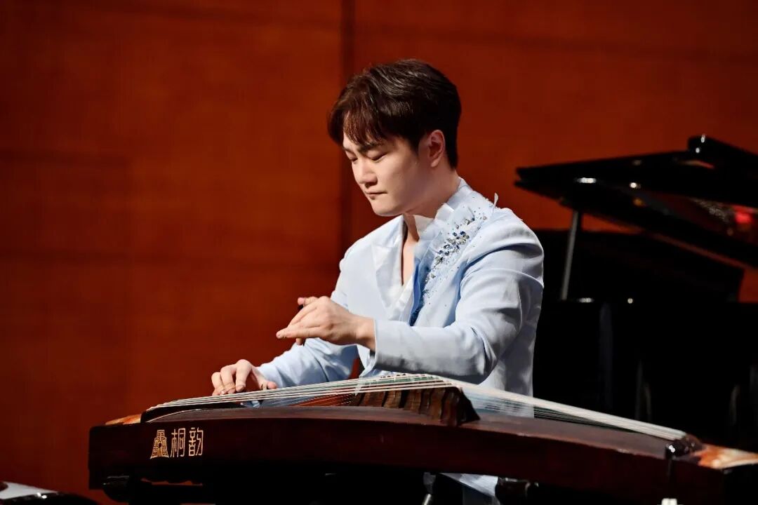 舞台灯光渐暗,全场目光聚焦于舞台中央,刘乐老师端坐筝前,《弦上探戈》的灵动、《梁山伯与祝英台》的缠绵依次呈现。他以精湛技艺将不同曲风的精髓诠释得淋漓尽致,时而灵动轻快,时而缠绵悱恻,充分展现了在多元化曲风中信手拈来的驾驭力。