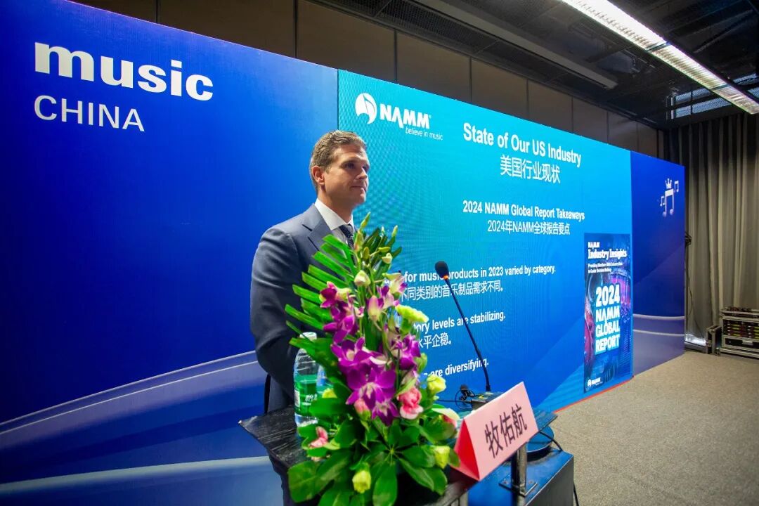 美国国际音乐制品协会总裁兼首席执行官牧佑航围绕美国乐器行业和全球乐器市场现状与趋势发表主题演讲,为与会者提供了观察国际音乐制品市场的全局视角。