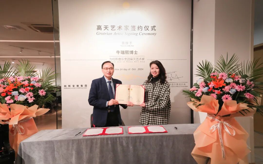 10月24日,“GROTRIAN(高天)钢琴艺术家签约仪式”济南成功举办。牛瑞熙博士,正式签约成为“GROTRIAN(高天)钢琴艺术家”。在全场嘉宾的见证下,柏斯音乐集团高级副总经理傅亚捷先生与牛瑞熙博士正式签约。